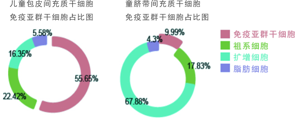 免疫亚群干细胞在几种不同的间充质干细胞中的比例为:儿童包皮间充质干细胞>骨髓间充质干细胞>脂肪间充质干细胞>脐带间充质干细胞。